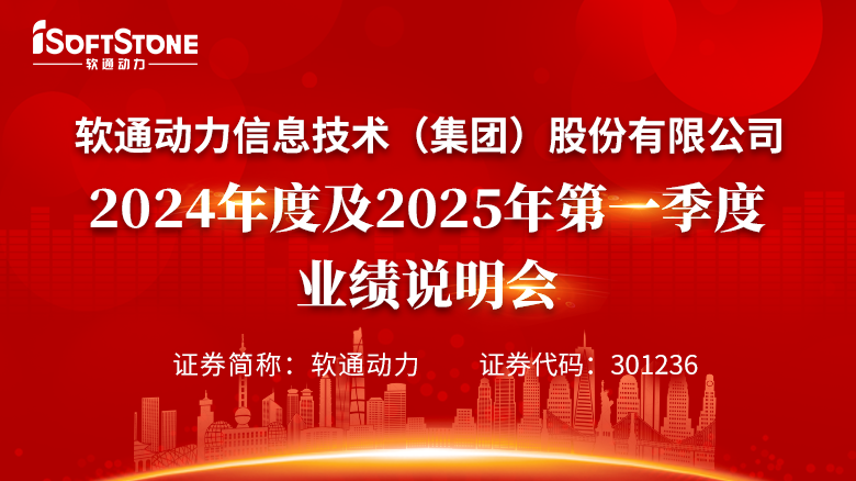 歡迎光臨證券日報網。軟通動力信息技術(集團)股份有限公司2024年度及2025年第一季度業績說明會于2025年6月27日(星期五)15:00-16:00,以網絡遠程文字交流的形式在本網舉行。[詳細]