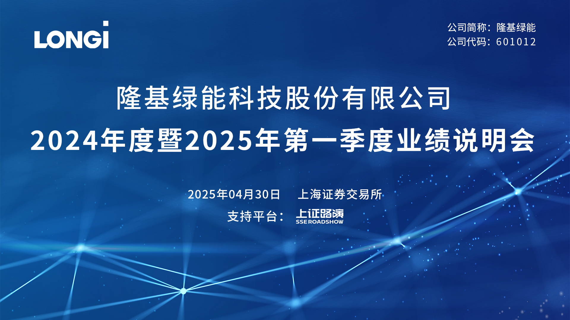 歡迎光臨證券日報網。隆基綠能科技股份有限公司 2024年度暨2025年第一季度業績說明會將于2025年4月30日(星期三)10:00 ~ 11:30舉行。[詳細]
