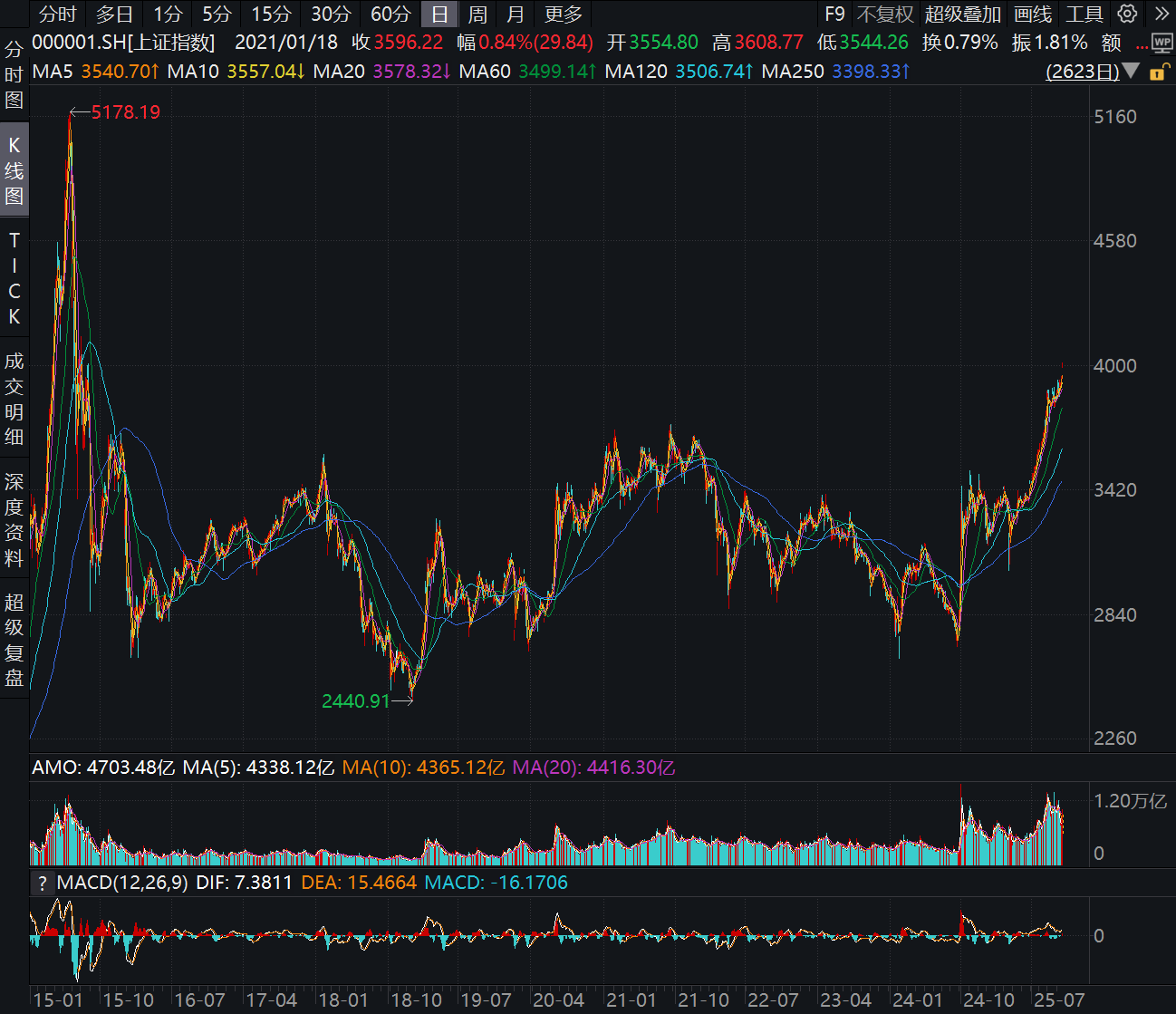 Wind資訊數(shù)據(jù)顯示,10月28日,上證指數(shù)早盤突破4000點(diǎn)整數(shù)關(guān)口,為2015年8月份以來首次,年內(nèi)累計(jì)漲幅超過19%。截至午間收盤,上證指數(shù)報(bào)4005.44點(diǎn),漲幅為0.21%,超3000只股票上漲。