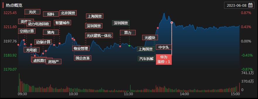 具體熱點方面,今日汽車拆解概念板塊領漲,超越科技、交運股份漲停;豬肉板塊企穩反彈,新五豐、巨星農牧漲停;建筑裝飾股集體走強,科新發展等6只個股漲停;房地產開發股持續活躍,大龍地產等4只個股漲停;午后大金融股、中字頭股異動,首創證券、弘業期貨一度漲停,杭州銀行、光大銀行漲超3%。另外,傳媒板塊領跌,教育、互聯網電商、混合現實、汽車芯片、液冷服務器、腦機接口、半導體及元件等板塊跌幅居前。