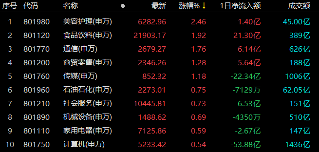 美容護理行業漲2.46%居首