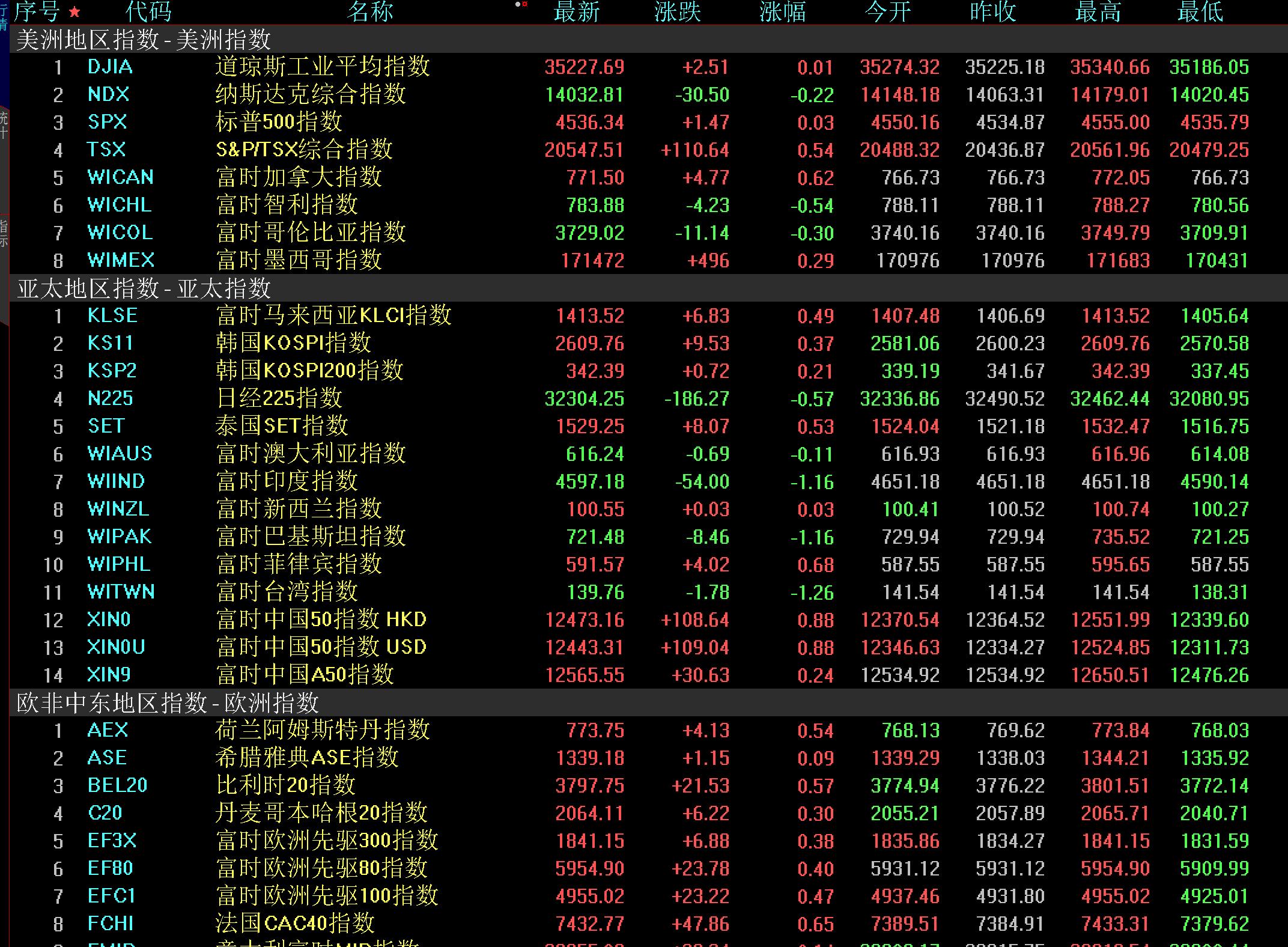 周五,美國三大股指收盤漲跌不一,道指漲0.01%報35227.69點,錄得連續第十日上漲,創2017年以來最長連漲天數;標普500指數漲0.03%報4536.34點,納指跌0.22%報14032.81點。本周,道指漲2.08%,標普500指數漲0.69%,納指跌0.57%。
