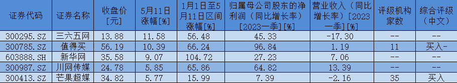 表:5月11日,數字媒體板塊漲幅超5%個股以來