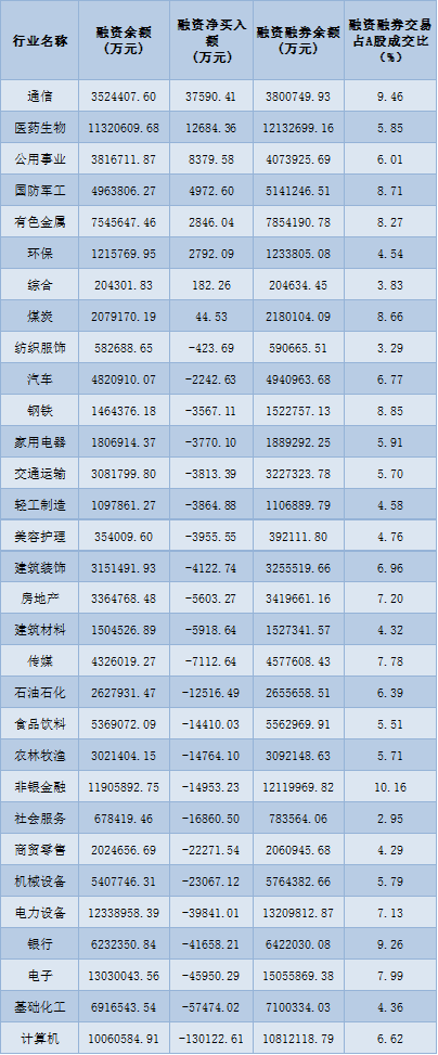 表:6月2日申萬一級行業(yè)兩融交易情況: