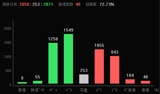 6月9日早盤,A股三大指數震蕩分化,滬市表現相對強勢。截至上午11:30,上證指數略漲0.03%,報3214.41點,深證成指和創業板指分別略跌0.05%和0.10%;滬深兩市成交額合計5640.7億元。總體來看,A股市場個股漲少跌多,有2050只上漲,2871只下跌,漲跌停方面,有48只個股漲停,跌停個股9只。