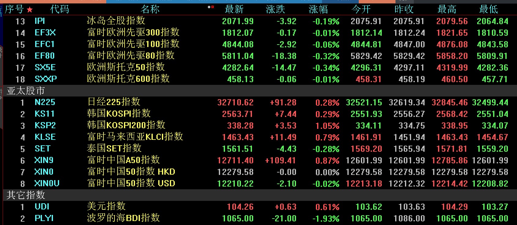 周五,亞太主要股市漲跌互現。韓國綜合指數漲0.29%,報2563.71點,周漲1.77%;日經225指數漲0.28%,報32710.62點,周漲3.44%;澳洲標普200指數跌0.37%,報7278.3點,周漲2.29%;新西蘭NZX50指數跌0.22%,報11528.73點,周漲0.53%。