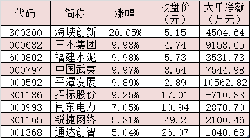 表:9月13日漲幅超5%的福建自貿區概念股