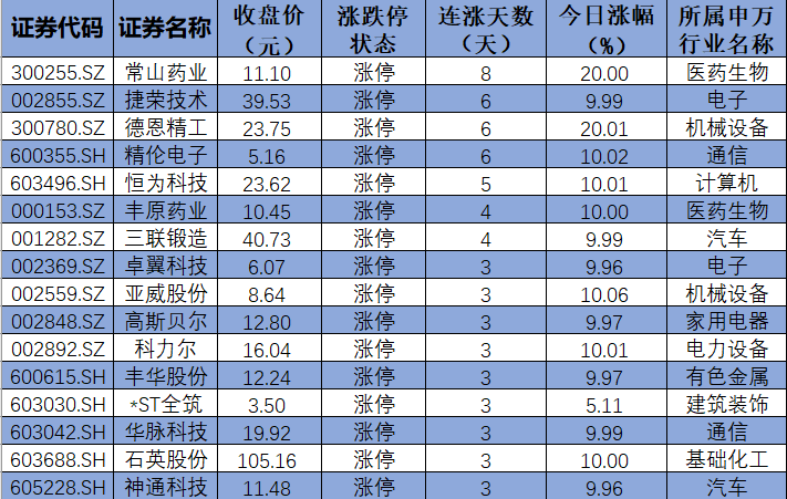 表:連續上漲3日且今日收盤漲停個股情況