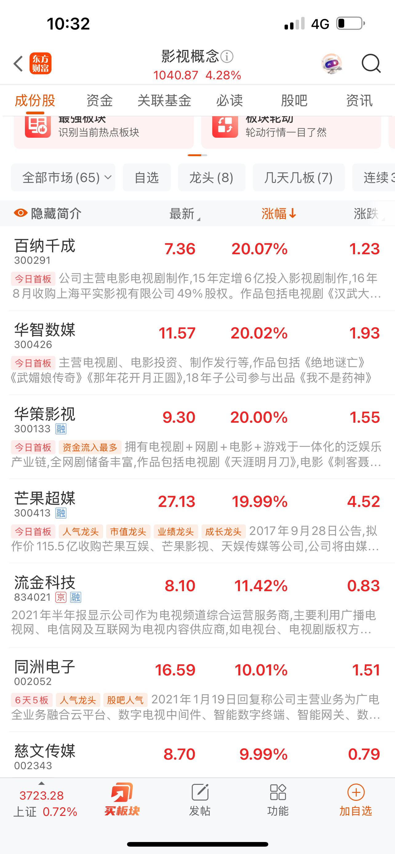 8月18日,多個影視概念股火熱。截至記者發稿,華智數媒、慈文傳媒、百納千成等多只個股漲停,華誼兄弟、橫店影視等多只個股大漲。