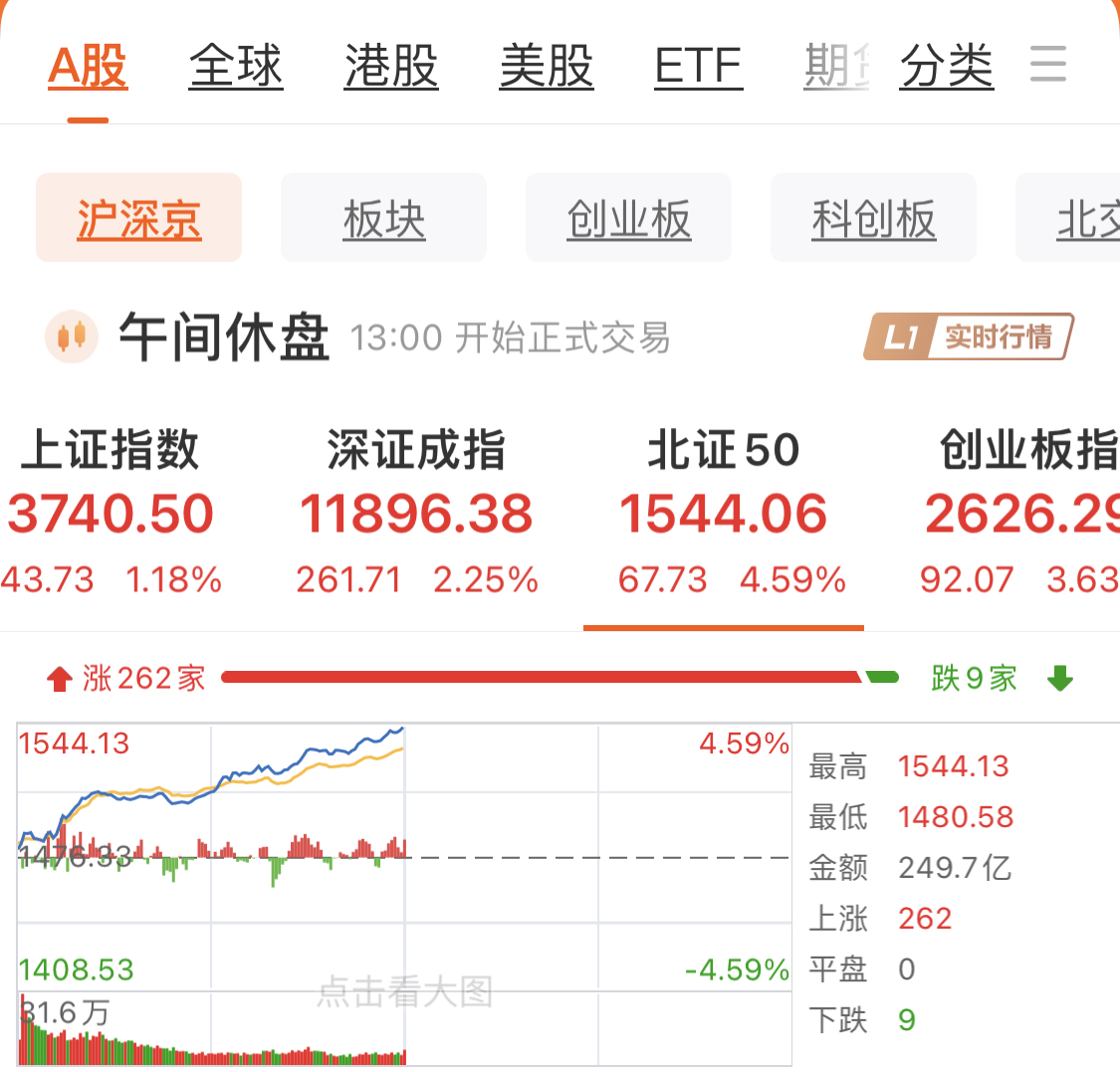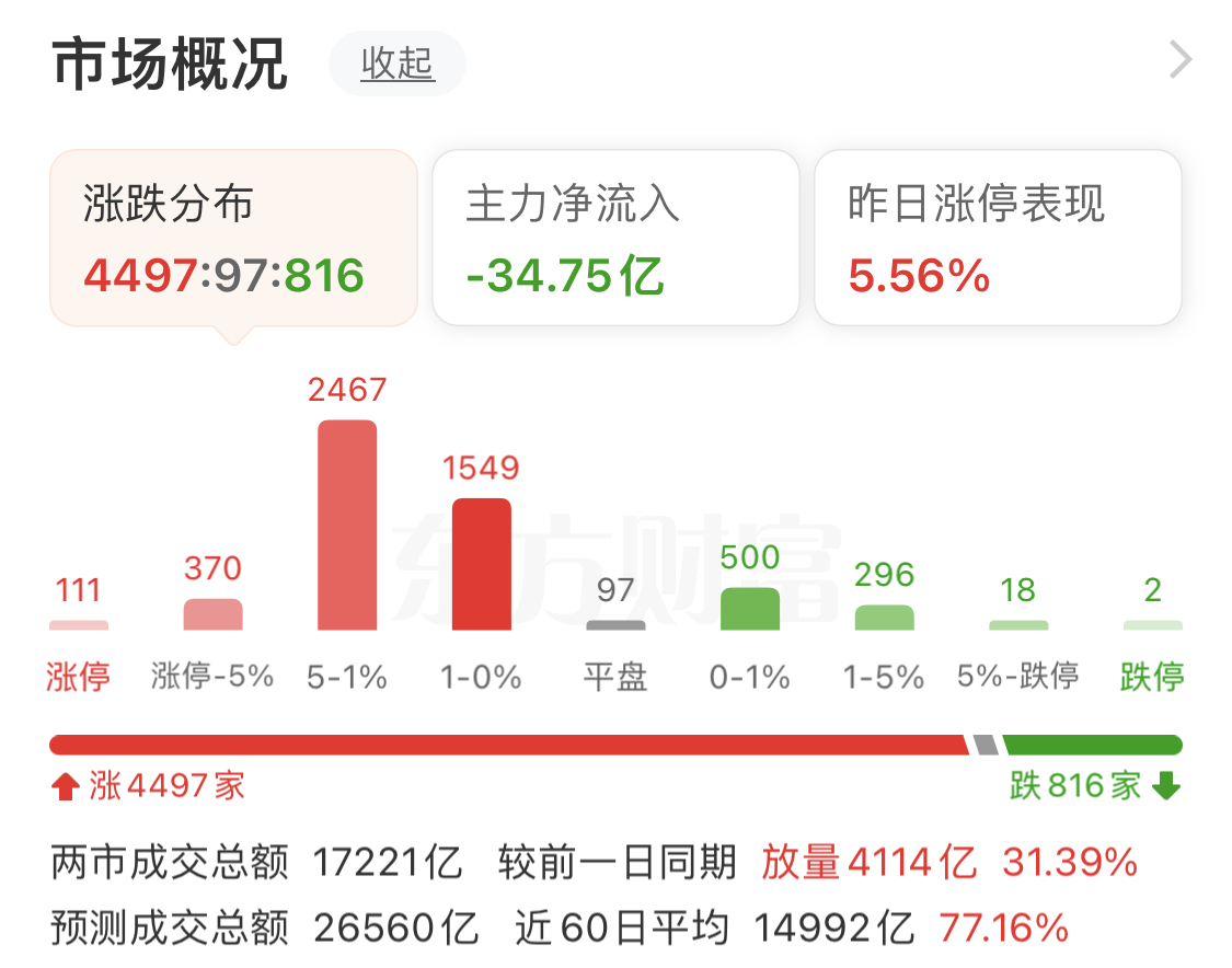 8月18日早盤時間,A股延續大漲態勢。截至上午收盤,上證指數站上3740.50點,漲1.18%,創近十年新高,創業板指拉升漲3.63%,深成指漲2.25%,全市上漲個股4497只。早盤時間,兩市成交總額17221億元,較前一日同期放量4114億元。