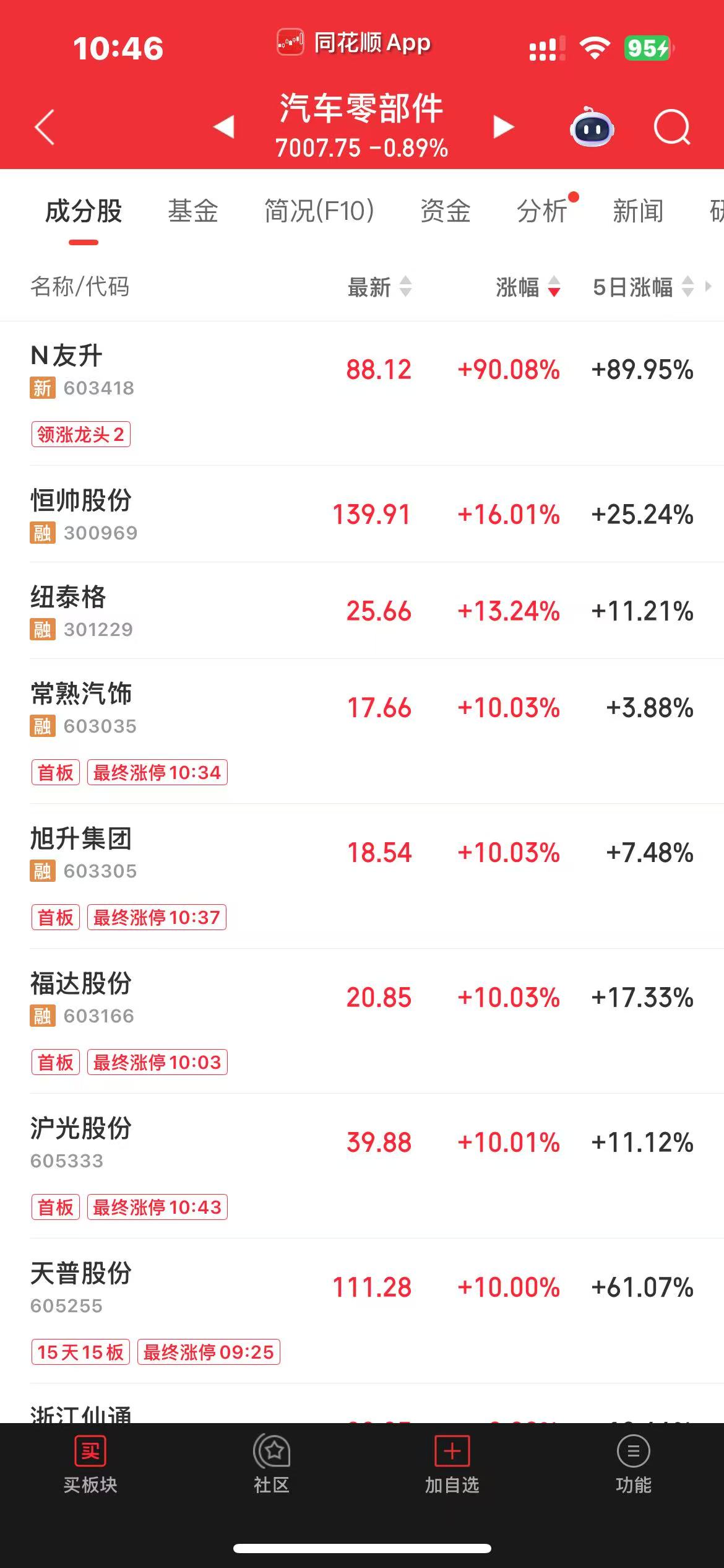 另外,恒帥股份(300969)、紐泰格(301229)、常熟汽飾(603035)、旭升集團(603305)、福達股份(603166)、天普股份(605255)、浙江仙通(603239)、滬光股份(605333)等個股股價漲停或漲幅超過10%。