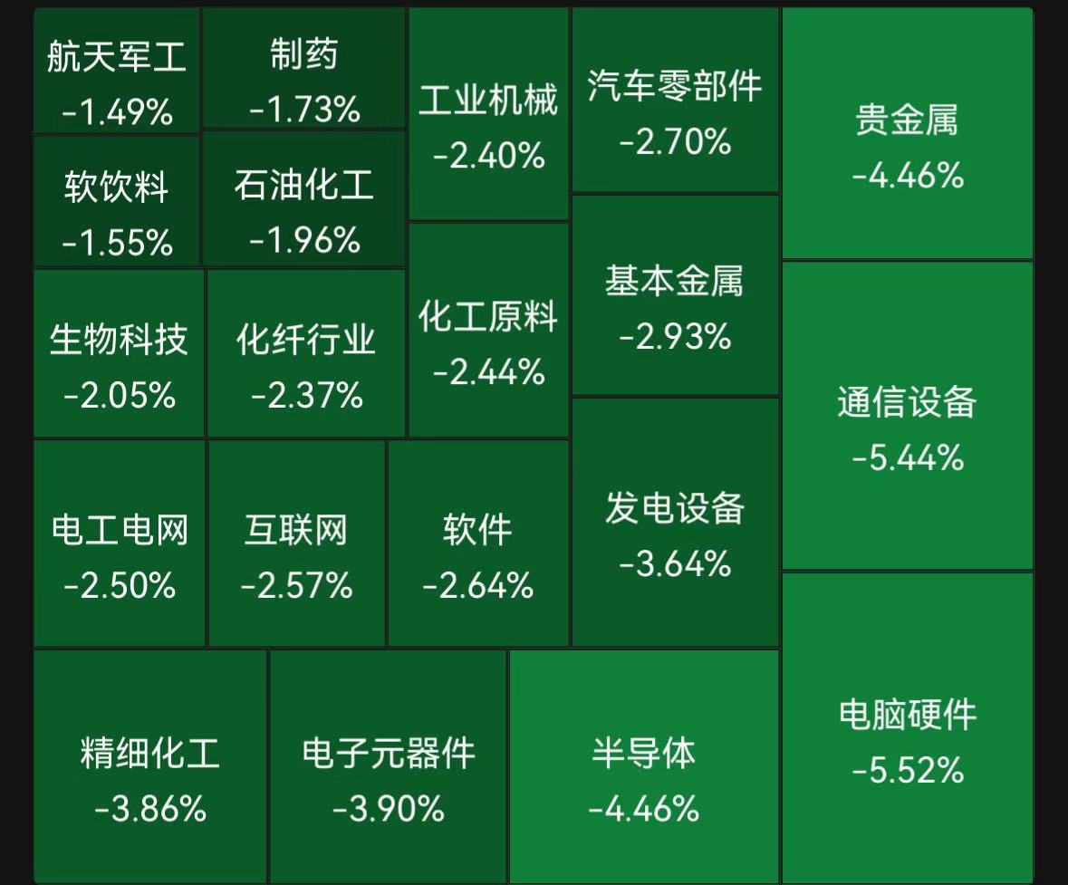 A股市場上,午后貴金屬、有色金屬個股應聲下跌;截至當日收盤,wind貴金屬行業板塊下跌4.46%,基本金屬板塊收跌2.93%,其中盛達資源下跌8.39%、洛陽鉬業、興業銀錫跌超7%、江西銅業下跌6.81%、紫金礦業下跌5.75%、四川黃金、赤峰黃金等多只個股跌超4%。