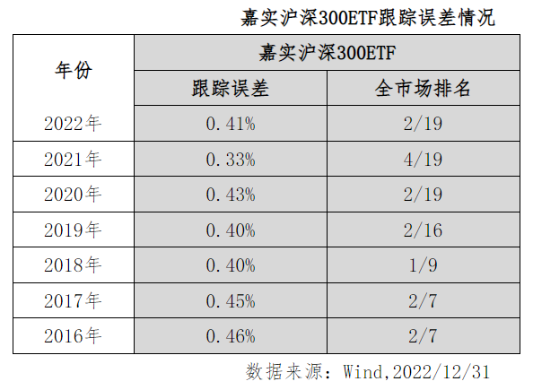 由于ETF屬于被動基金,投資者通常用跟蹤誤差來衡量一支ETF對其所跟蹤指數表現的擬合好壞,越低的跟蹤誤差意味著ETF的收益與指數收益越接近,也表明ETF管理方有更強的ETF基金管理能力。自成立以來,滬深300ETF的跟蹤誤差排名長期位居市場同類ETF排名前列。